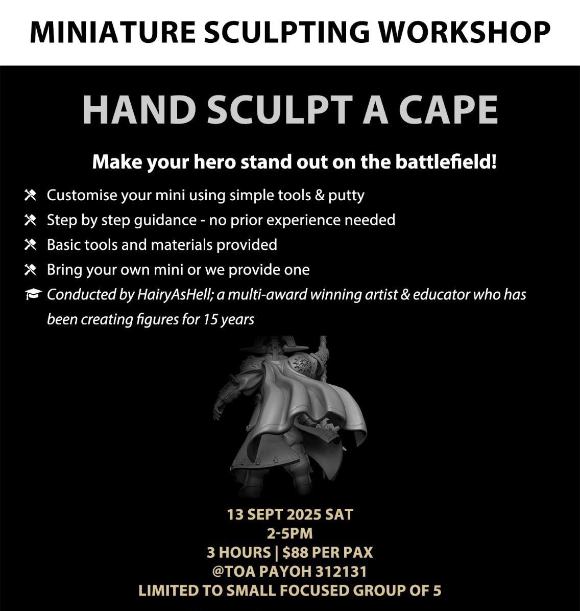 Want your hero to stand out on the battlefield? In this hands-on workshop, you’ll learn how to sculpt, customize, and upgrade your miniatures using simple tools and putty.